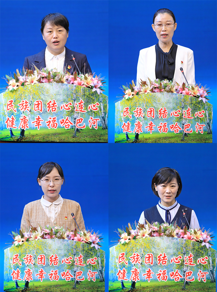 随后,哈巴河县卫健委党组成员、卫生计生综合监督执法局局长杨玉、哈巴河县教育局党组成员孙燕青、哈巴河县阿克齐镇党委书记夏尔巴提·阿力肯、新疆泰能职业技能培训学校副校长王阿智依次作了《聚十为一 融促五治》哈巴河县社会心理服务体系建设总结;《以五抓 促五融 带动五持续》哈巴河县教育局心理工作总结;《七心联动 造福于民》阿克齐镇七心志愿服务队助力社会治理工作总结;《新疆泰能学校三阶段助力哈巴河县社会心理服务体系建设》社会力量参与哈巴河县社会心理服务体系建设工作经验总结。