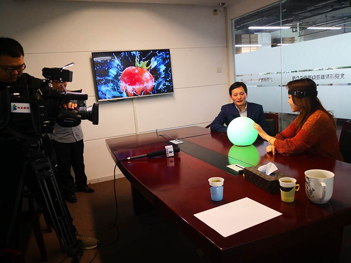海淀电视台的记者兴奋地体验大脑360和思语脑波灯