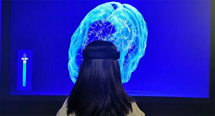 7月15日,“你好•玄界”全4K沉浸式科技艺术展在北京中华世纪坛数字展厅开幕,展览主题为“畅想元宇宙科技下的万相世界”。视友科技脑机藉由 “意念之力”脑机互动体验展现。