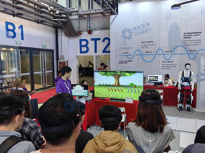 机器人是现代化产业体系的重要组成,是经济社会智能化变革的关键工具,将驱动人类社会加速进入智能时代。近年来,科技的飞速发展不仅改变了人们的生活方式,也深刻影响着人类与机器之间的交互方式。在这个充满活力的领域,脑机接口技术成为了创新的前沿,引领着人机互动的新时代。而在这激动人心的背景下,2023世界机器人大会在北京盛大开幕,在清华大学心理学系的展位上,将视友科技的脑机接口技术精彩呈现给全球观众。