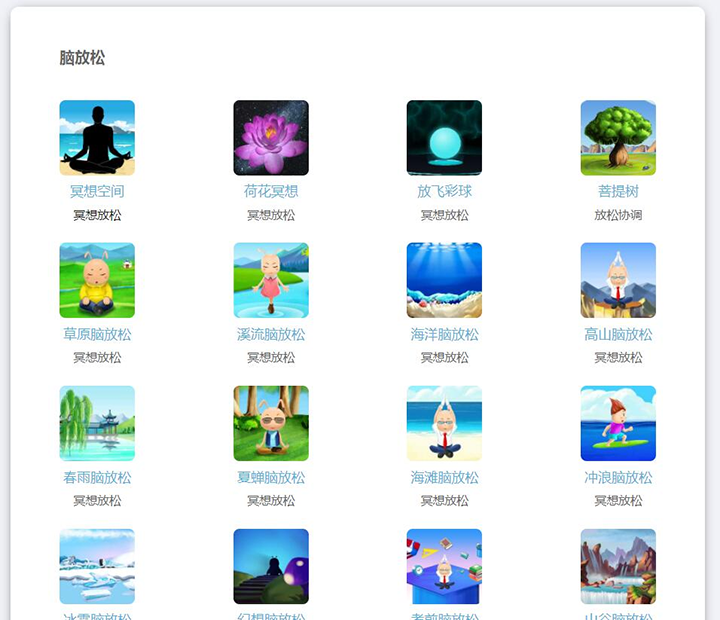 (3) 提供正念冥想、控制意识体验、助眠冥想等多种脑电反馈冥想放松模块