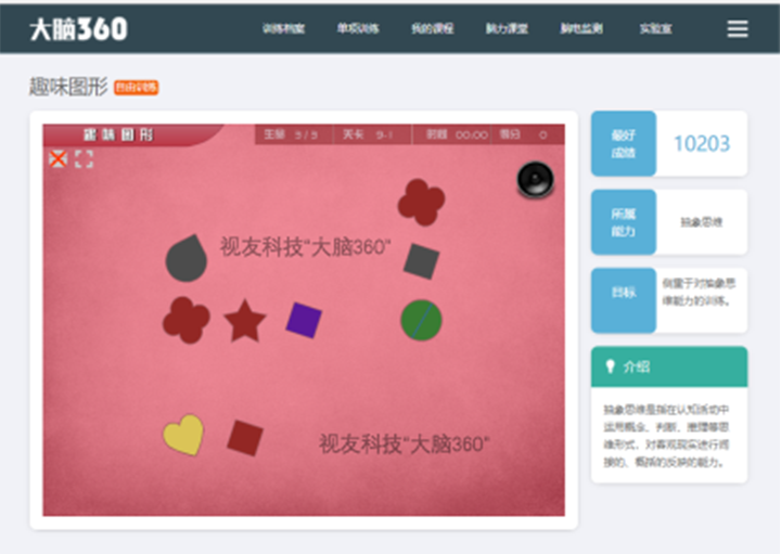 视友科技“大脑360” 中的抽象思维认知能力训练项目——趣味图形