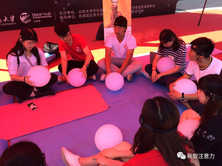 北京大学的学生用思语脑波灯做正念
