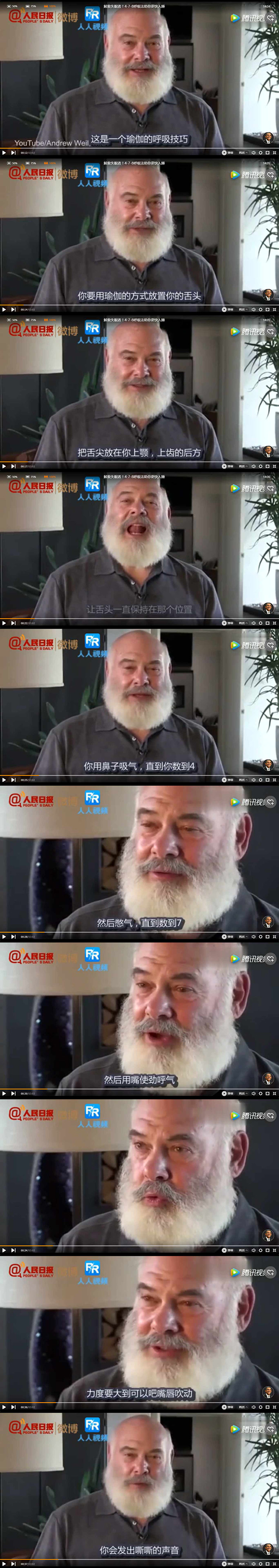 据英国《每日邮报》网站报道,美国亚利桑那州的安德鲁·韦尔博士推荐了一种帮助睡眠的「4-7-8呼吸法」,他称之为「神经系统天然的镇静剂」,号称能使人在60秒内进入睡眠状态,而不用药物,帮助你减轻焦虑,促进身心健康。因为这种方法在呼吸的时候心中要数数,所以韦尔博士称这种方法是「4-7-8呼吸法」。