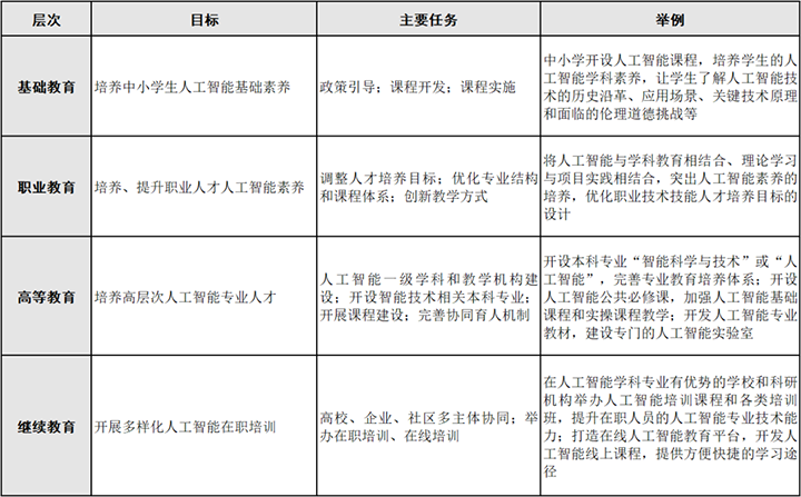表1 各层次AI教育的目标与主要任务