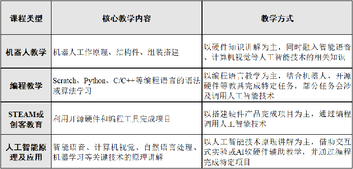 表2 四类AI课程类型对比