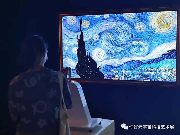本次展览特点突出:首先视听品质精良,全4K画质令视觉元素细腻艳丽、脱颖而出;其次技术应用广泛,NFT数字头像创作、数字人直播、虚拟沉浸交互、光影互动娱乐、交互机械装置等技术均有涉及;主题内容丰富:太空科技、艺术畅想、哲学思考、即兴创作等多个主题单元;数字角色导览:展览全程虚拟角色辅助讲解,每个展项均与手机联动。