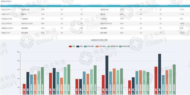 - (2)多维数据分析。平台提供了从认知领域、认知能力维度、认知项目到年龄分布、区域分布、机构分布等多个维度的数据统计、分析及深层次数据挖掘服务。